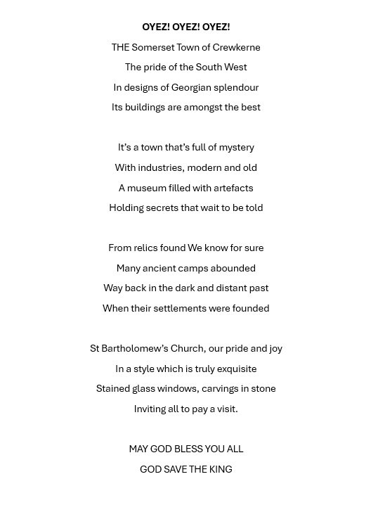 The winning entries will become part of our official Town Crier tradition — a chance to leave your mark on Crewkerne’s history!